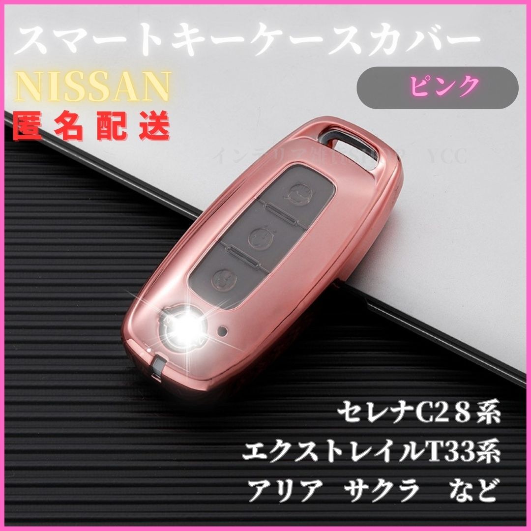 - スマートキーケース キーカバー 日産 NISSAN セレナ C28 エクストレイル T33 ノート E13 ルークス クリア ピンク