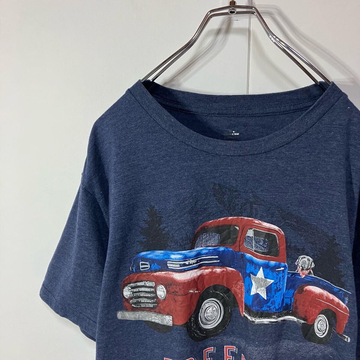 - 古着 カー アニマル プリント クルーネック 半袖 Tシャツ 大きいサイズ ネイビー XL