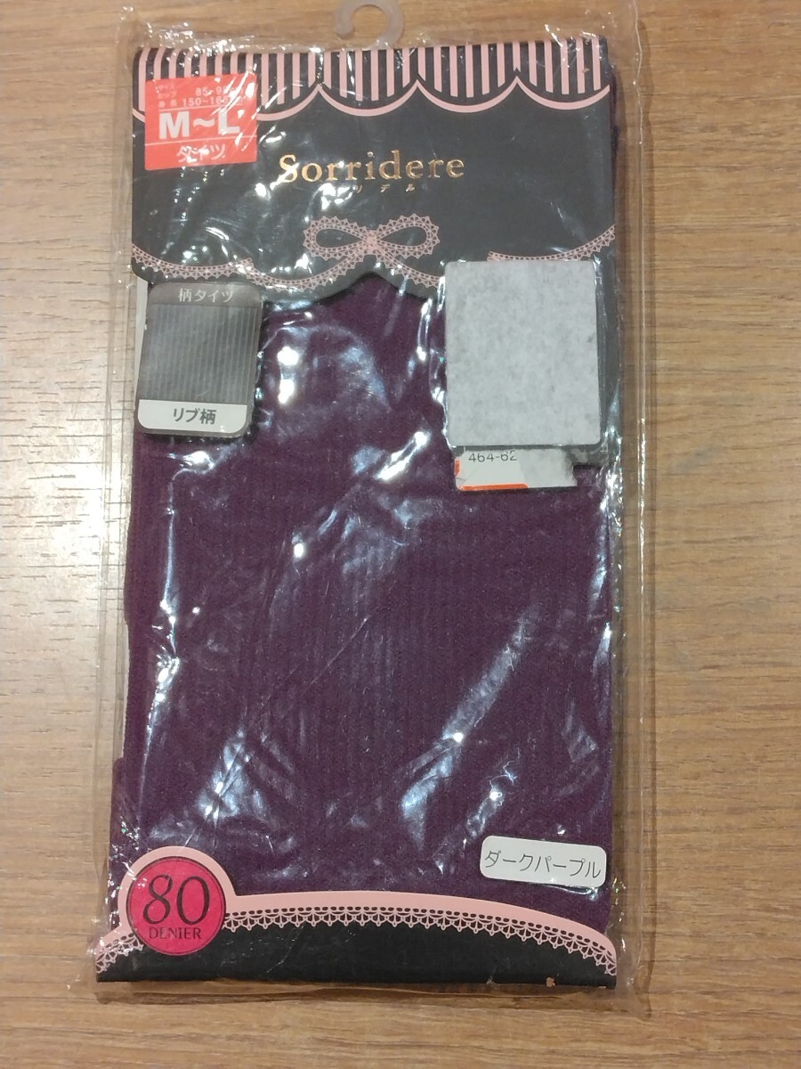 - 《新品》レディース タイツ M-Lサイズ 80デニール ダークパープル リブ柄 肌着 インナー 婦人物 c50/37