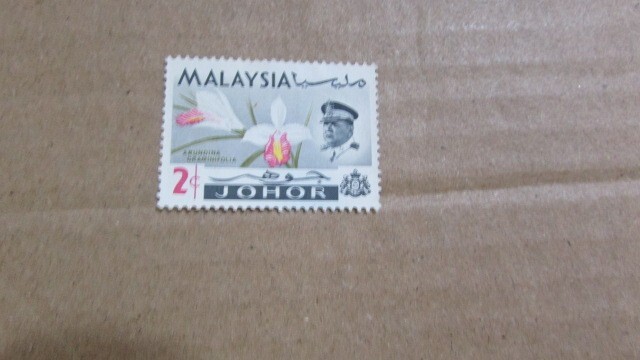 - ⑫ 植物・草花 マレーシア ジョホール 蘭;アルンディナ・グラミニフォリア 1種完 1965-11-15