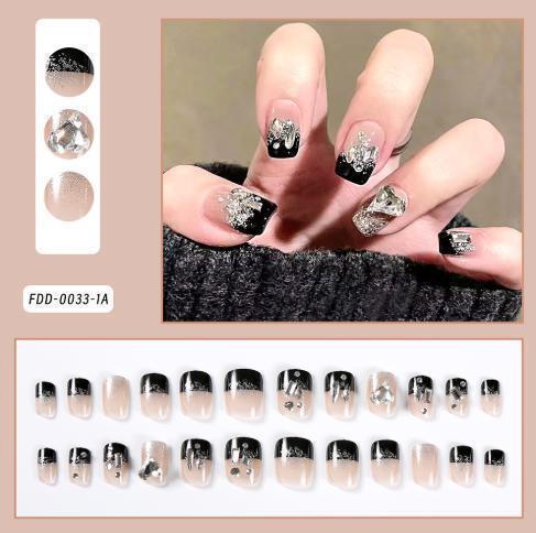 - 【訳あり】 ネイルチップ ブラック ビジュー ストーン 韓国風 24pacs