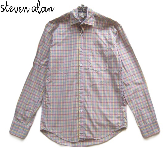 - 美品USA製!!スティーブンアラン Steven Alan*胸ポケット付きチェック柄シャツ XS 実寸S
