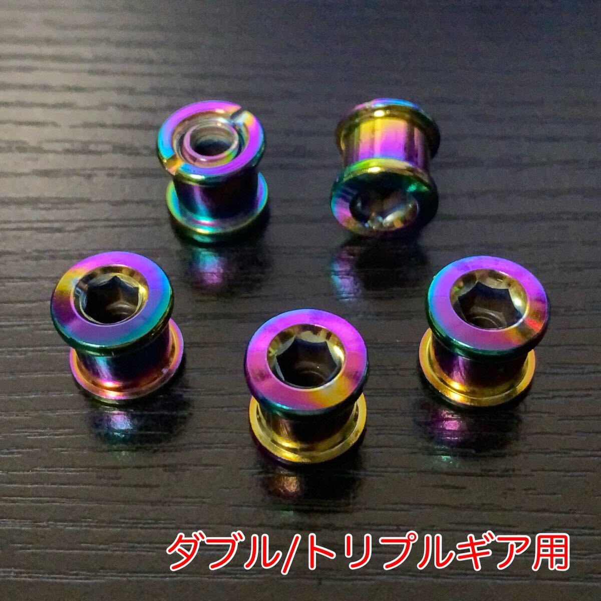 - チェーンリングボルト ダブルorトリプルギア 5個 オイルスリック チタンカラー【送料無料】