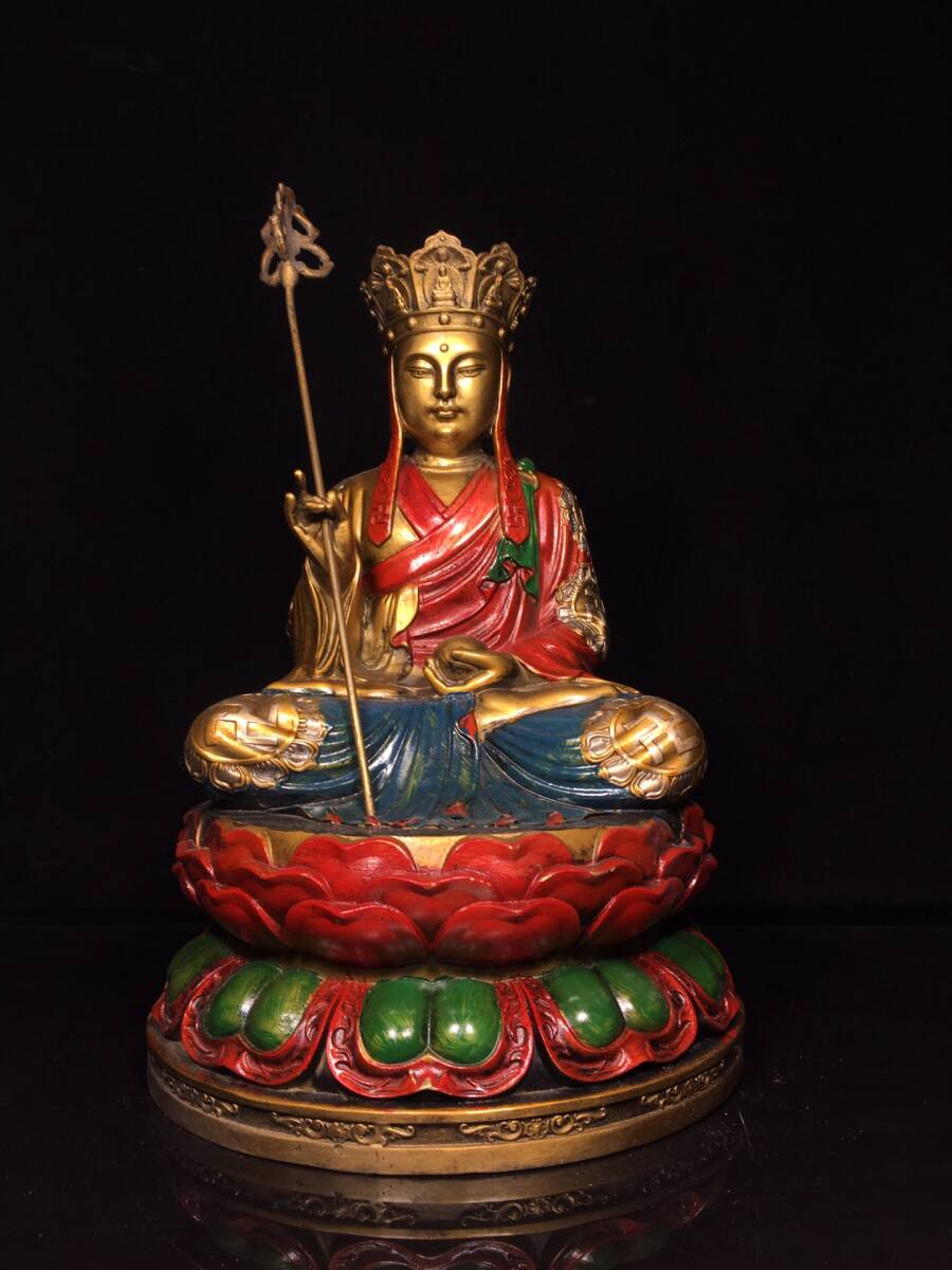 - 【超珍館蔵】銅製 金鍍 彩繪 地藏王菩薩像 仏像 宗教 仏教古美術 供養品 古賞物 古董品 古美術品 時代物 旧家蔵出 稀少珍蔵品