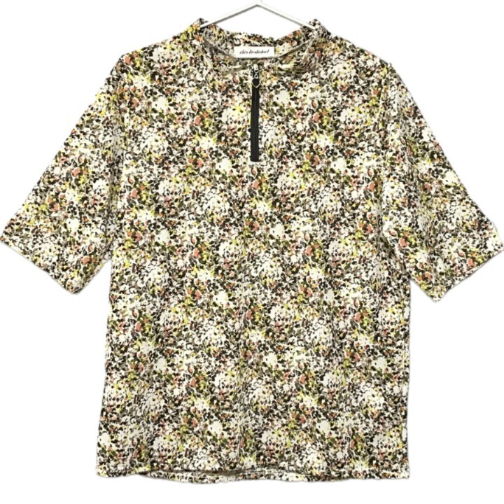 - ■新品■ハーフジップ 斑模様 五分袖 カットソー 白 黄色 緑 M L サイズ 薄手 半袖シャツ フェミニン カジュアル レディース 婦人 ミセス85