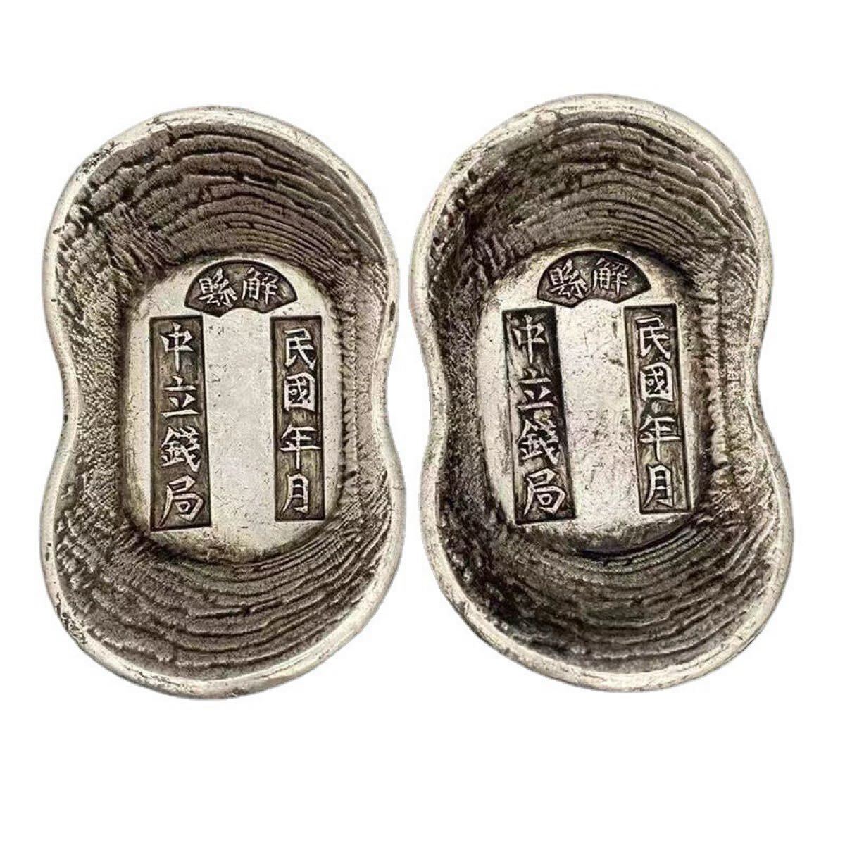 - 中立銭局 民国銀元宝 解県造り 古錠 元宝型 銀塊 清末民初風 アンティーク骨董品 コレクション 希少珍品 歴史的価値 民国時代 2錠セット