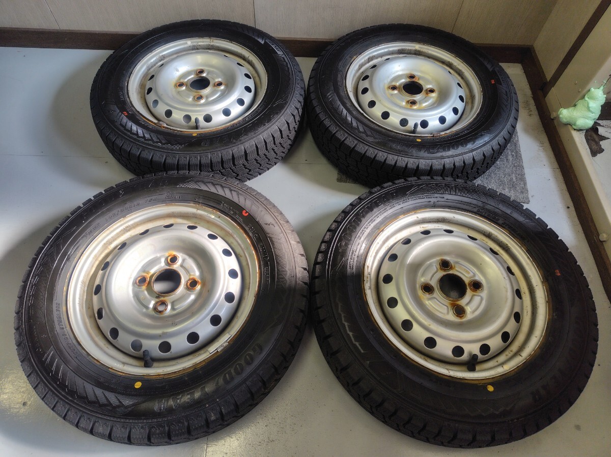 - 中古タイヤホイール GOODYEAR ICENAVI8 145/80R13 75Q ダイハツ スチールホイール 13×4j +40 4H100 バリ溝 送料込み X247