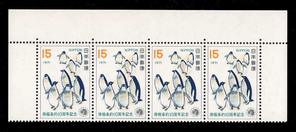 - 南極条約10周年記念切手 ☆かわいいペンギン☆ 余白付き◆4連刷◆ スイカペンギンのファンの方もどうぞ!