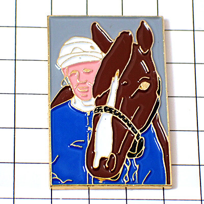 - ピンバッジ・競馬ジョッキー騎手に甘える馬◆フランス限定ピンズ◆レアなヴィンテージものピンバッチ