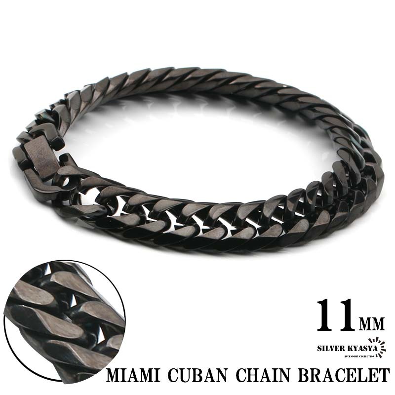 - チェーンブレスレット 6面カット ダブル喜平チェーンブレスレット 幅11mmブレスレット ステンレス 黒 ブラック