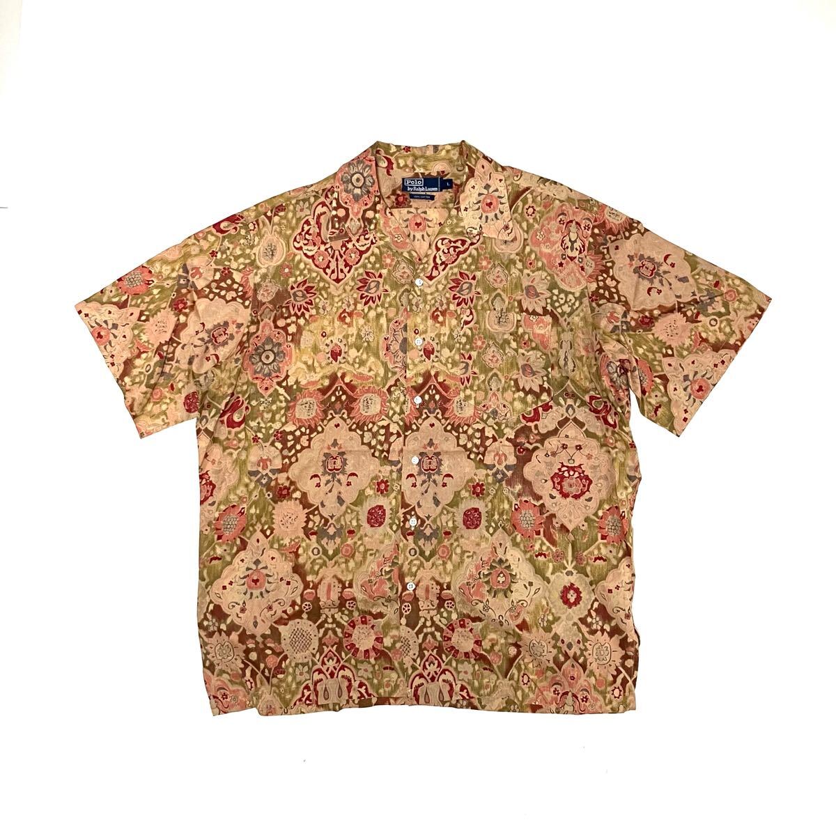 > L ポロ ラルフローレン 総柄 開襟 半袖 シャツ ペイズリー柄 バンダナ柄 花柄 アロハ ハワイアン オープンカラー コットン ヴィンテージ