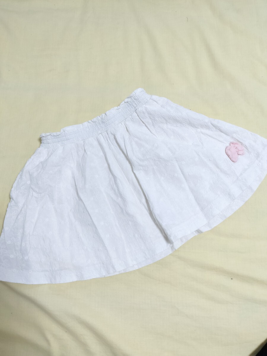 > HRLの リボン付き 刺繍布の白綿スカート 11綿100%