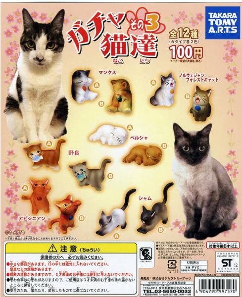 > ◆ガチャ猫達 ガチャネコたち その3…4種 (マンクスB/ノルウェジャンフォレストキャットB/野良猫A/シャムA) ガチャねこ フィギュア