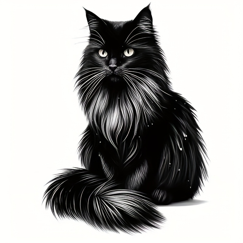 > ステッカー 黒猫 ネコ 長毛 17.8cm イラスト 猫 防水 ビニール素材 インテリア 貼り付け シール ねこ 車用 窓用 ノートパソコン t7297