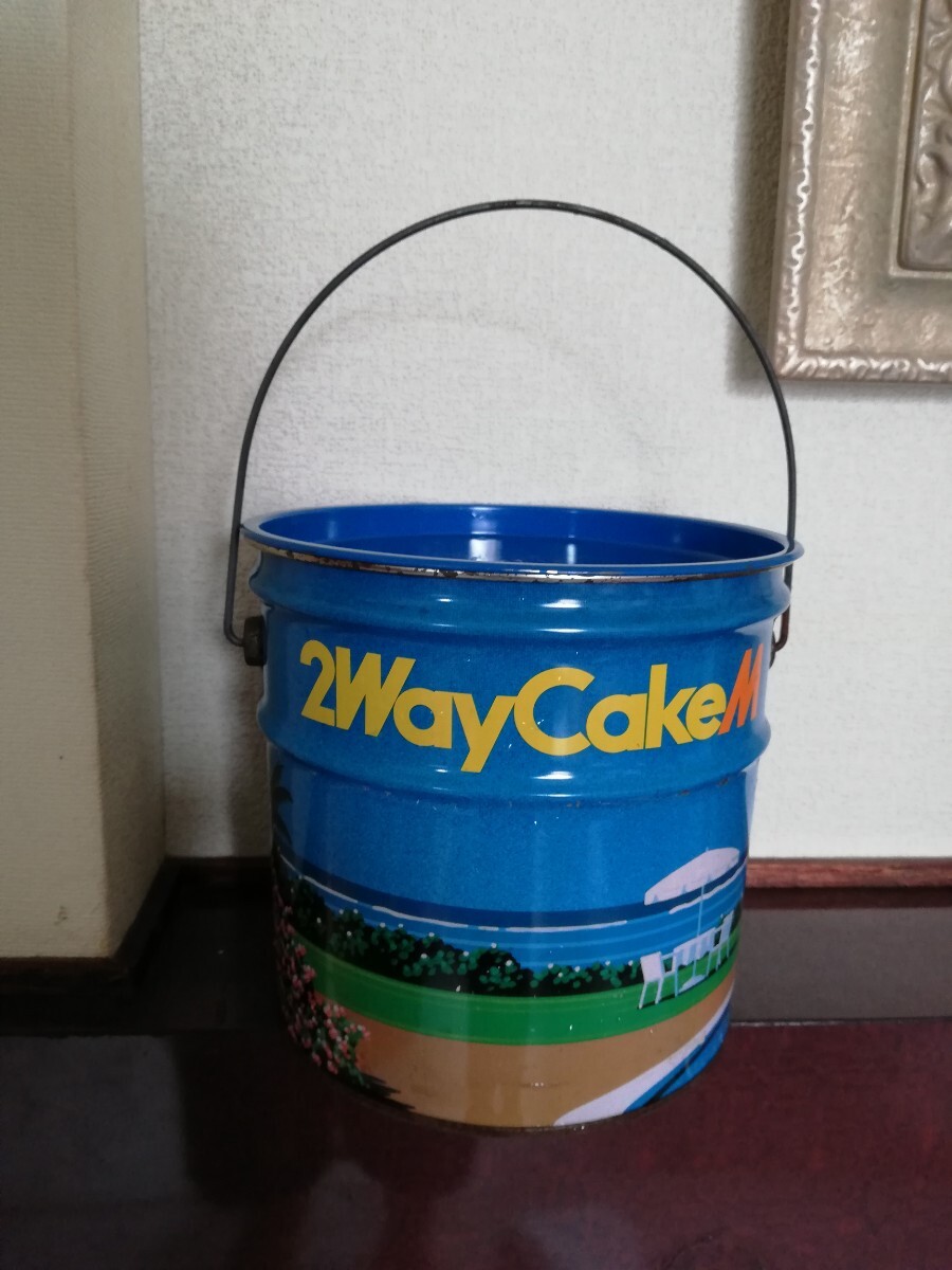 > 昭和レトロ 80年代 ペール缶 コーセー KOSE 非売品グッズ2wayCakeM 企業物 鈴木英人? 永井博? ジャパニーズポップス ブリキ