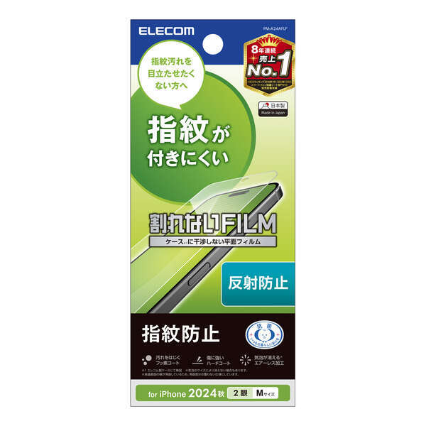 - iPhone16用画面保護フィルム 指紋防止/反射防止タイプ 端末の画面を傷や汚れから守る: PM-A24AFLF