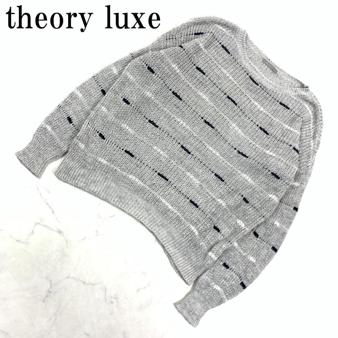 - LA6897 セオリーリュクス 麻 長袖透かし編みニット theory luxe カジュアル 透け感有 リブニットグレー 38