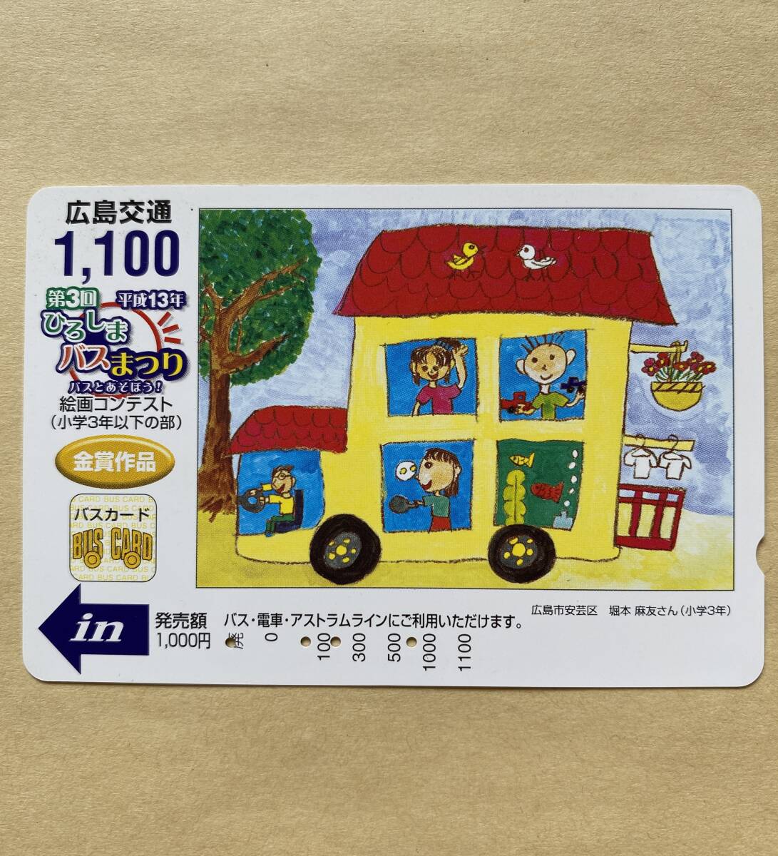 - 【使用済】 バスカード 広島交通 第3回 平成13年 ひろしまバスまつり バスとあそぼう! 絵画コンテスト (小学3年以下の部) 金賞作品