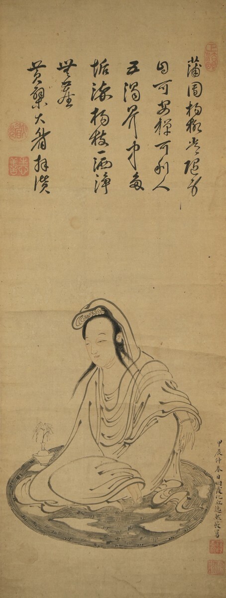 - 【真作】掛軸「逸然性融画 大眉性善賛 観音画賛」寛文4年逸然64歳 箱書有 江戸前期 渡来禅僧 興福寺 書画