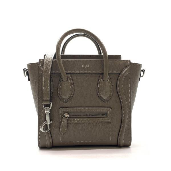 - CELINE セリーヌ ラゲージ ナノショッパー スリ グレージュ ハンドバッグ ショルダーバッグ 2WAY レザー レディース かばん 管理RY25003149