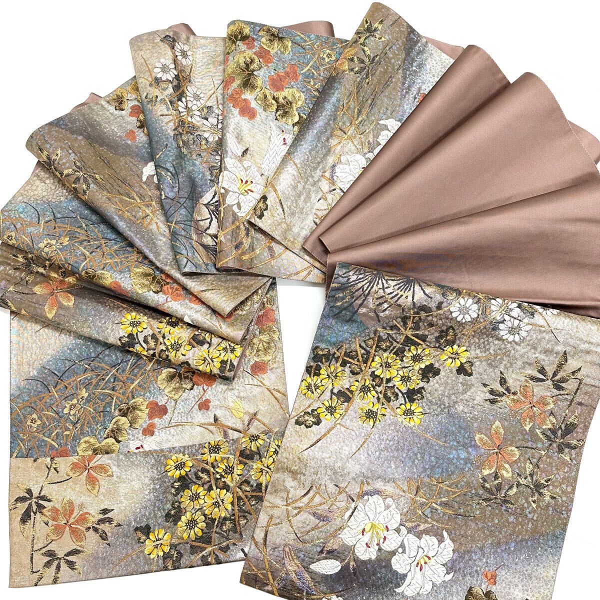 - 【七福】c649 逸品 高級品 正絹 袋帯 六通 四季花 金糸 銀糸 刺繍 豪華