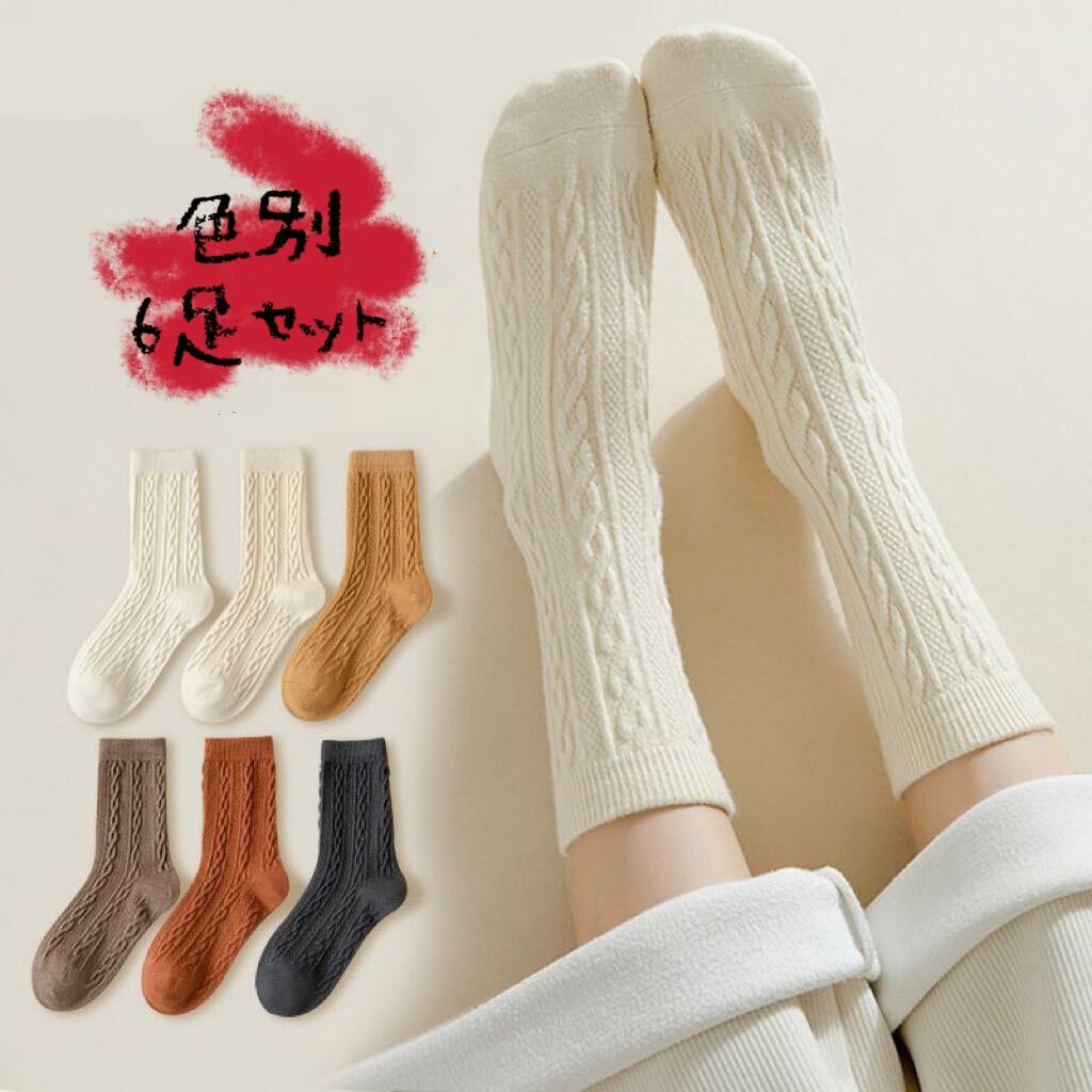 - 新品 レディースソックス通気性 色別6足セット お洒落オールシーズンクルー丈ロングソックス まとめ売り女性靴下