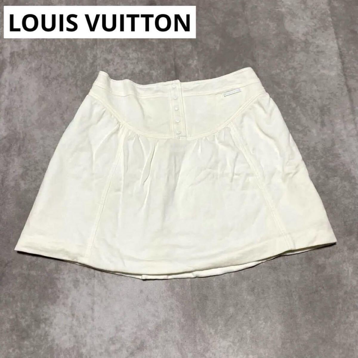 > ルイヴィトン LOUIS VUITTON (38) ミニスカート 膝上丈 ミニ ロゴボタン ロゴプレート 裏地あり ミニポケットあり France フランス製