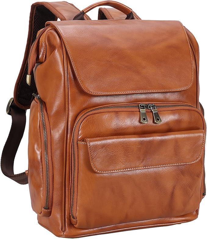 - ムラ染め ガマ口 リュック メンズ 本革 バックパック タイダイ風 グラテーション 底鋲付き キャラメル色