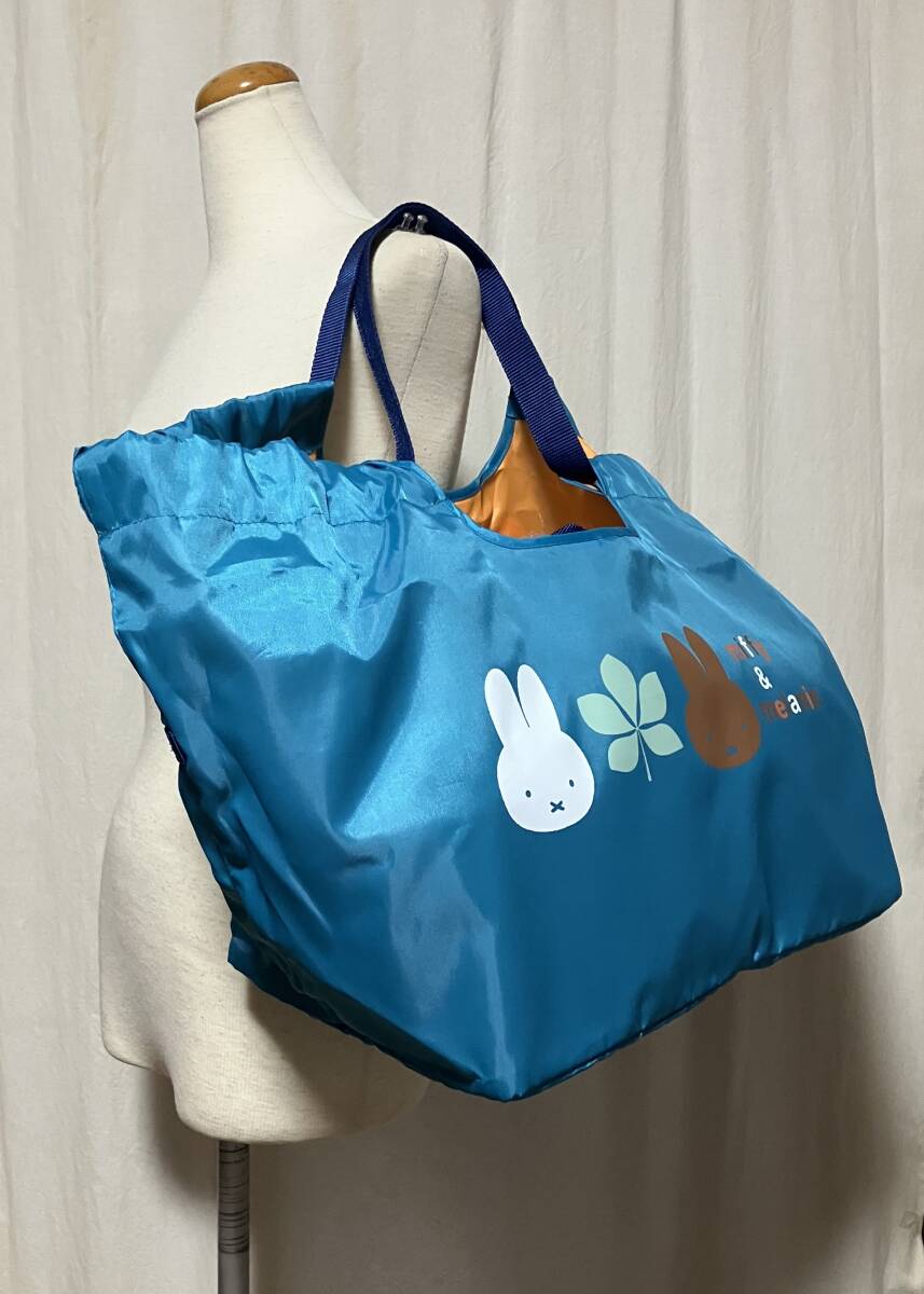 - miffy & melanie ミッフィー/メラニー トートバッグ/かばん 青緑系/オレンジ系 試した程度で保管 しわクセあり フジパン
