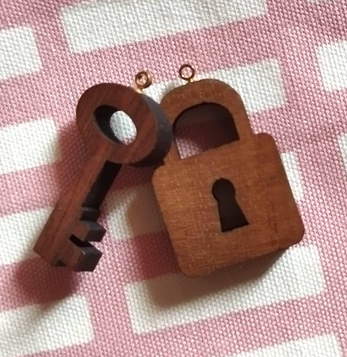 - 木製のペンダントヘッド 【鍵と南京錠】 木工職人さんが作りました。 キーホルダーにもいかがでしょうか。
