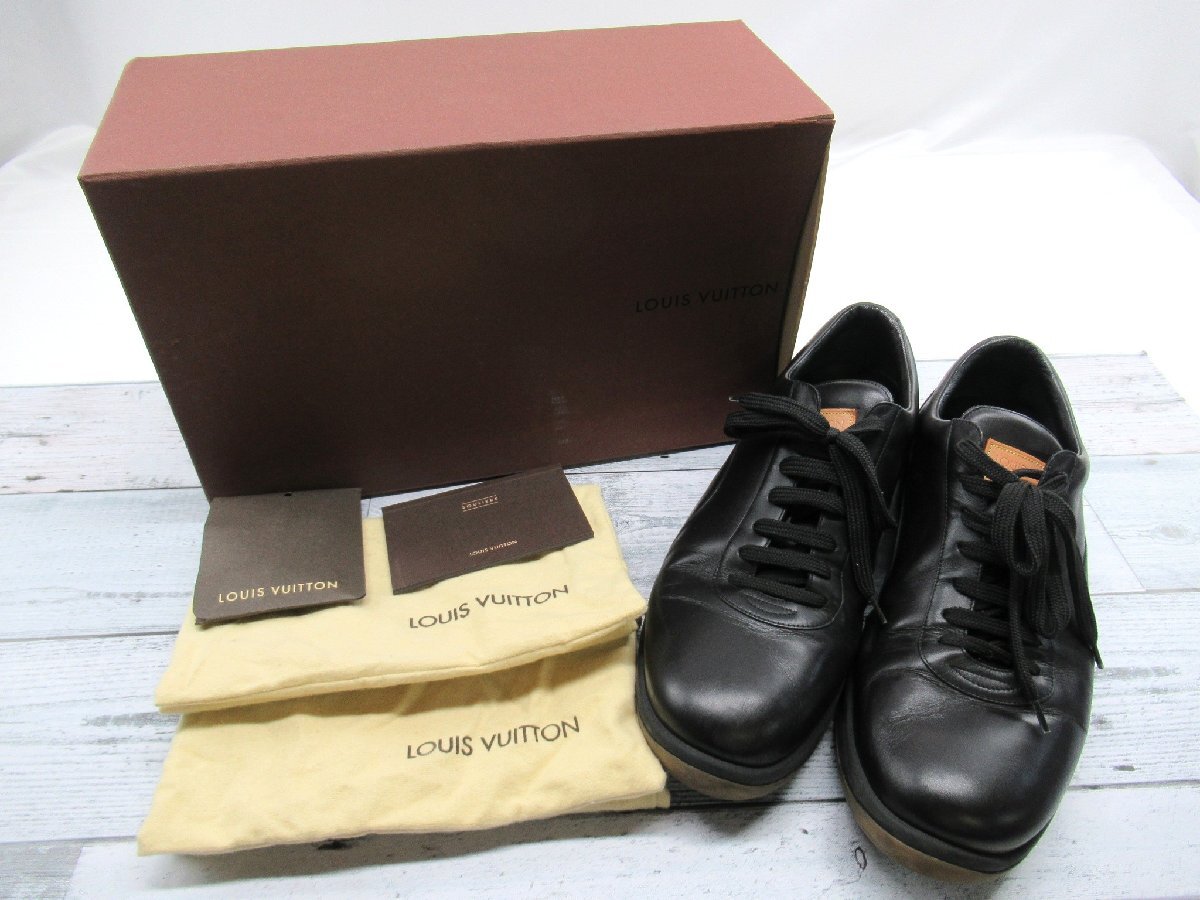 > ☆【B送900円】2012 LOUIS VUITTON ルイヴィトン メンズ ローカットスニーカー レザー ブラック 革靴 レースアップ 9 1/2