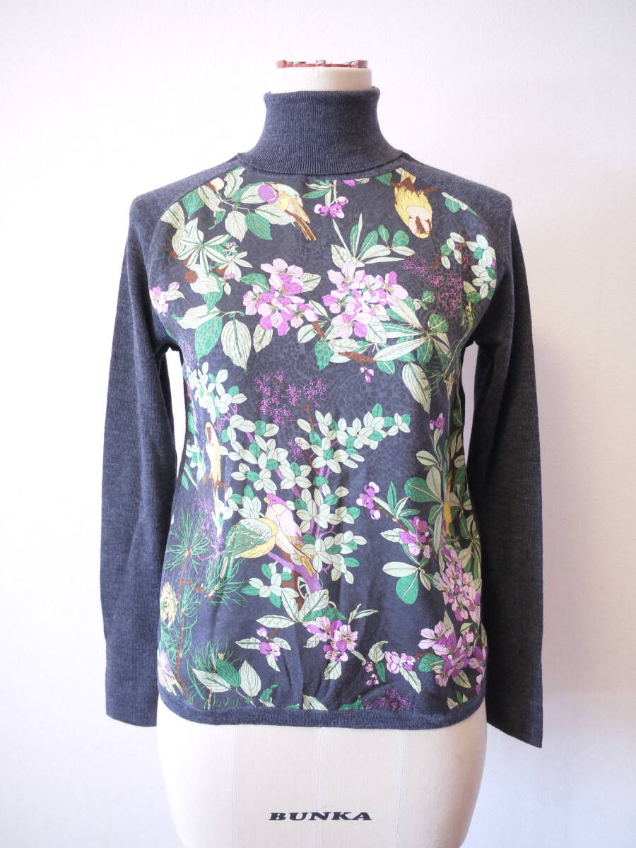 > 49AV・junko shimada ジュンコシマダ ニット×プリント地 タートルネックニット グレー 38 未使用