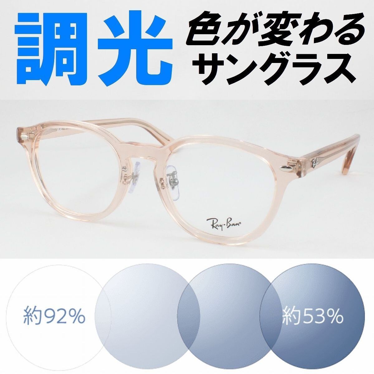 > Ray-Ban レイバン RX5443D-8267 ライトブルー調光サングラス 度なし 伊達メガネ UVカット ボストン セルフレーム アジアンフィット