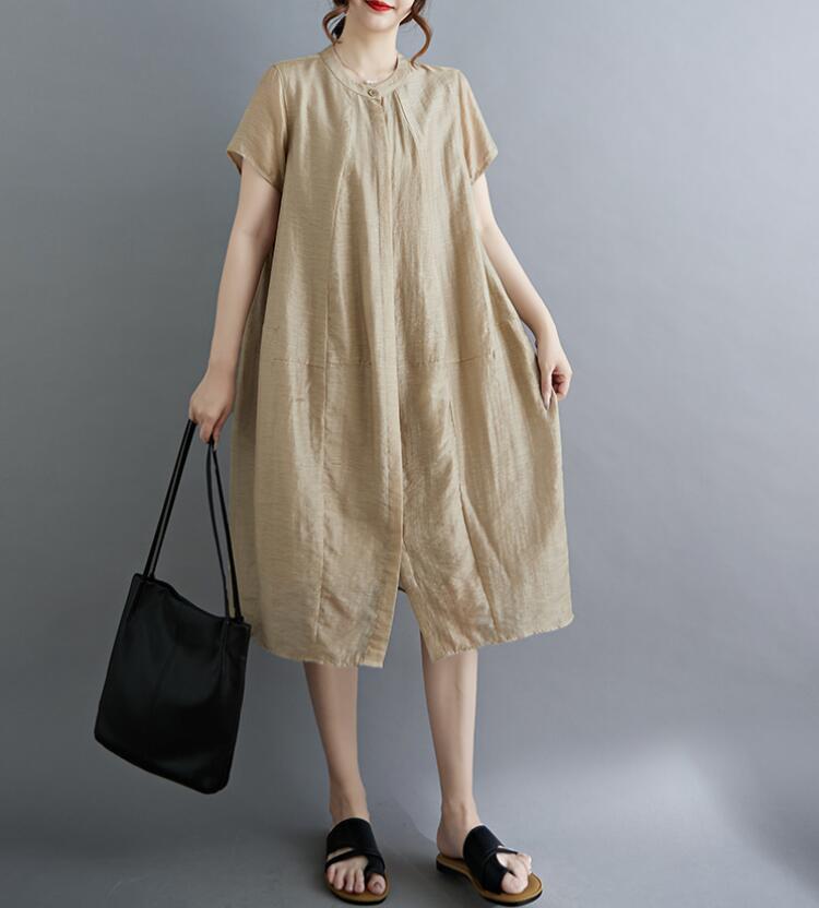 - 新入荷*夏ワンピース 上質 シャツワンピース 半袖 レディース ひざ丈ワンピース きれいめ 大きいサイズ 着痩せ 膝丈ワンピース*シャンパン
