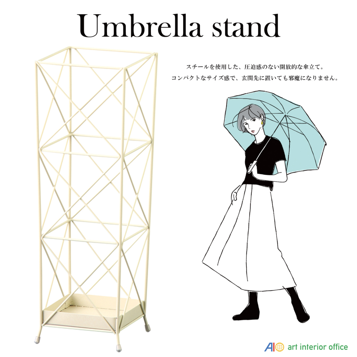 > おしゃれな傘立て アイボリー アンブレラスタンド アイアン シンプル モダン カジュアル コンパクト 玄関収納 AKB-406IV