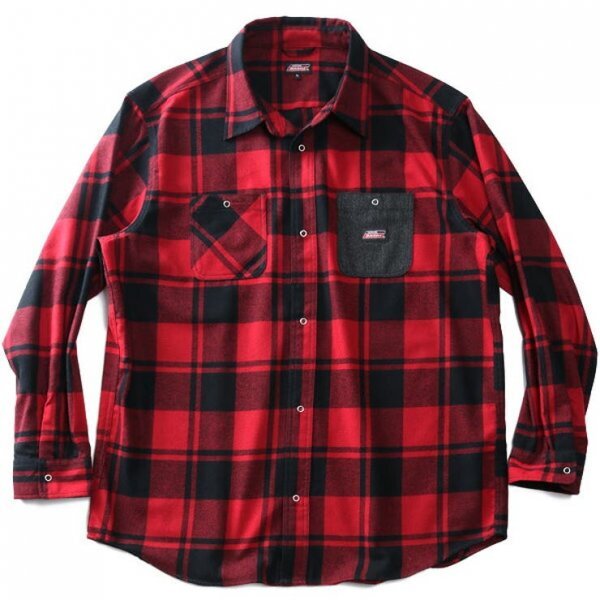 - G313 Dickies ディッキーズ フランネル チェック ワーク シャツ 長袖 大きいサイズ メンズ レッド系 サイズ 4L ポケット 切替 アメカジ