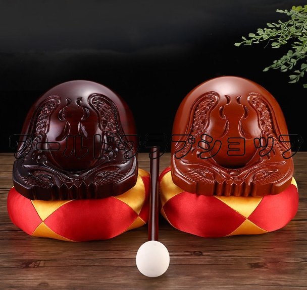 - 木魚 道教 打楽器 伝統 木彫り 楠(クスノキ)無垢材 台湾製 セット品 4寸