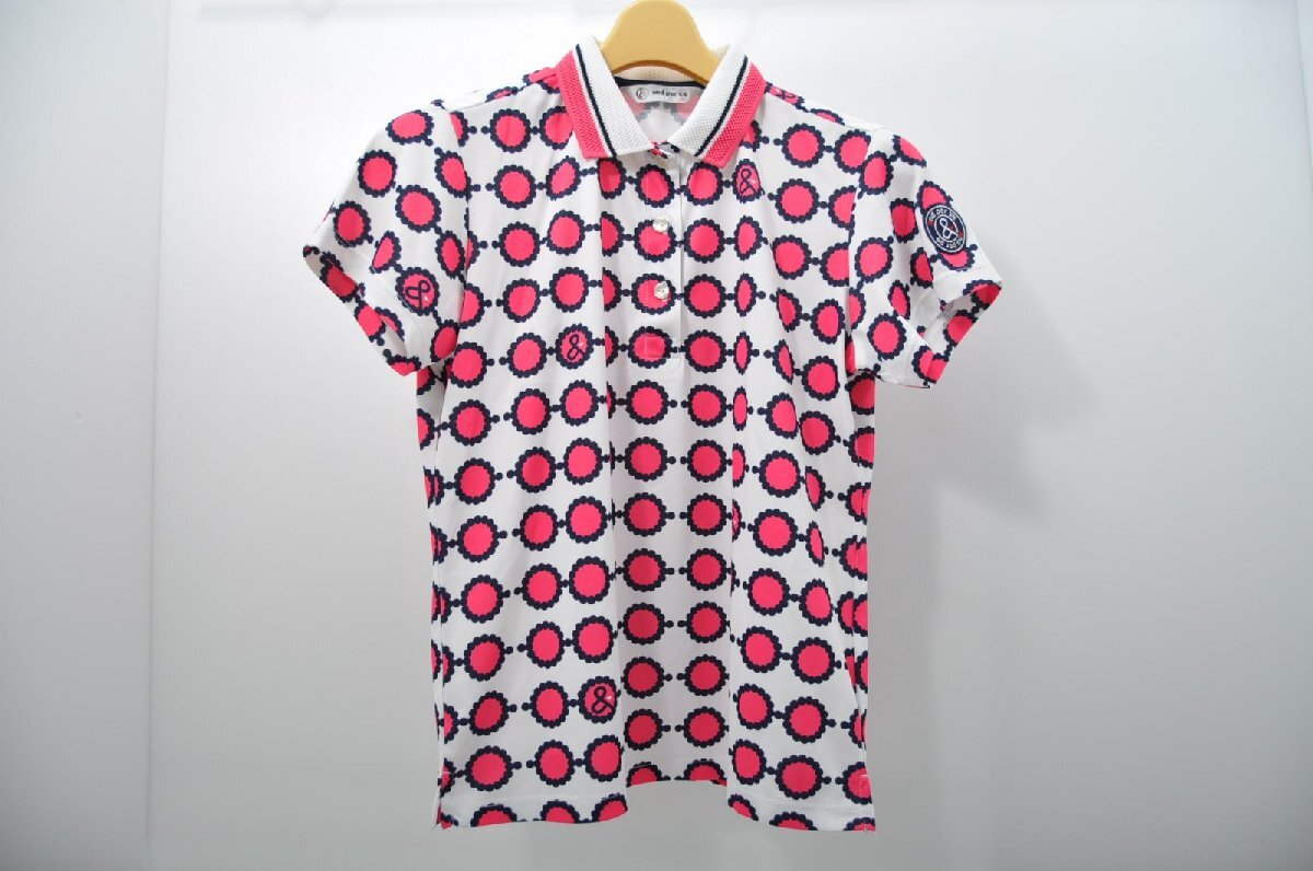 - coco 中古【SALE】アンパスィ and per se レディース 半袖ポロシャツ M 白×紺×ピンク ホワイト×ネイビー 総柄 ネコパケ発送可 80109