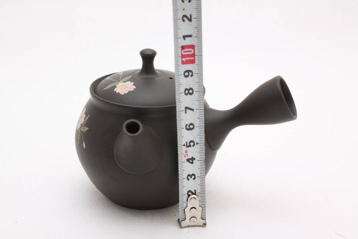 - 1055 新品未使用 常滑焼 人気作家 昭龍 梅原昭二 桜花画 黒マット 軽い135g 横手 急須 茶注 煎茶道具