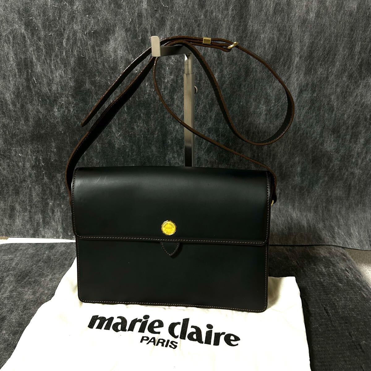 - marie claire マリ・クレール ショルダーバッグ 肩掛け レザー ブラック *AU