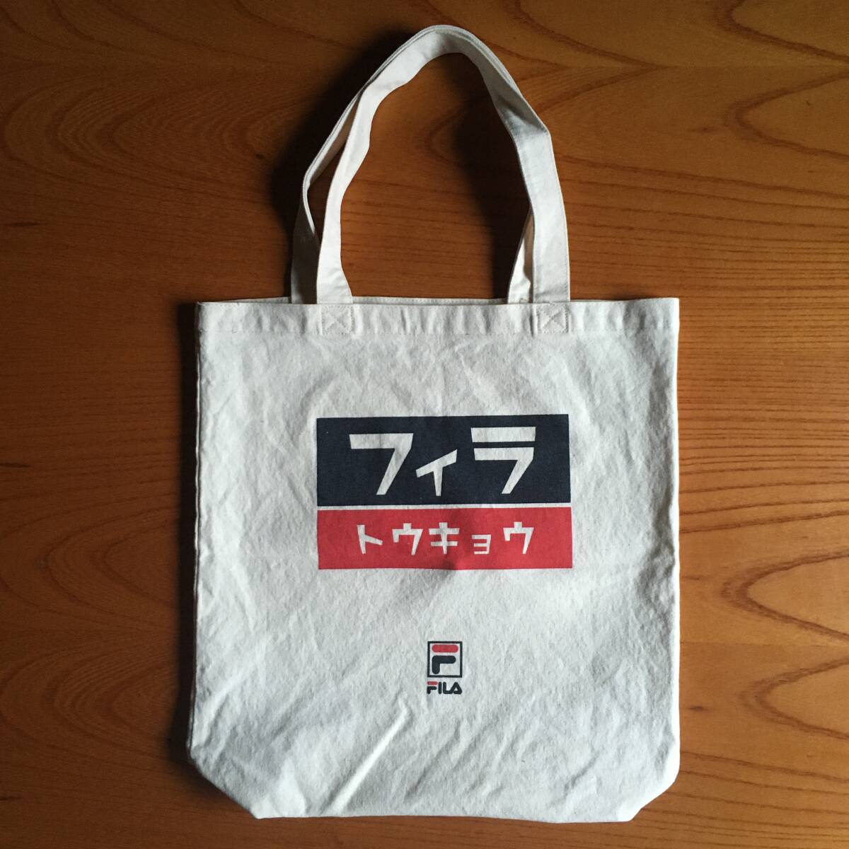 - 中古 フィラ FILA TOKYO 東京 トートバッグ コットンキャンバス マルチバッグ カタカナ オリンピック記念