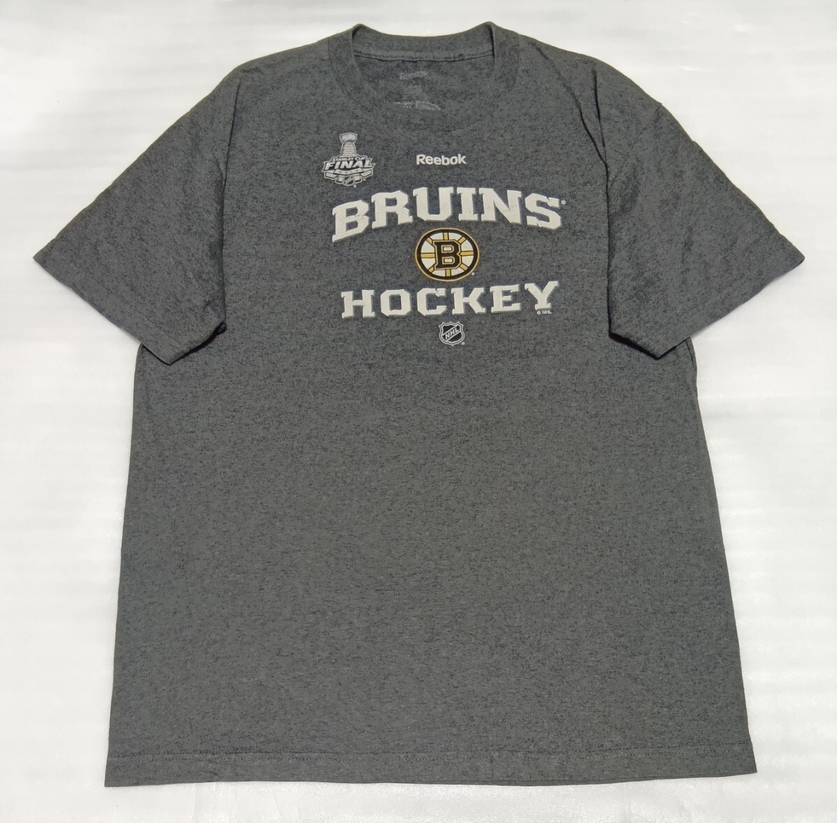 > ☆Reebok サイズL 半袖Tシャツ GLAYグレイNHLバックBIGプリントMARCHAND63FINAL2013BRUINS洗濯済スポーツHOCKEYファッションTEE リーボック