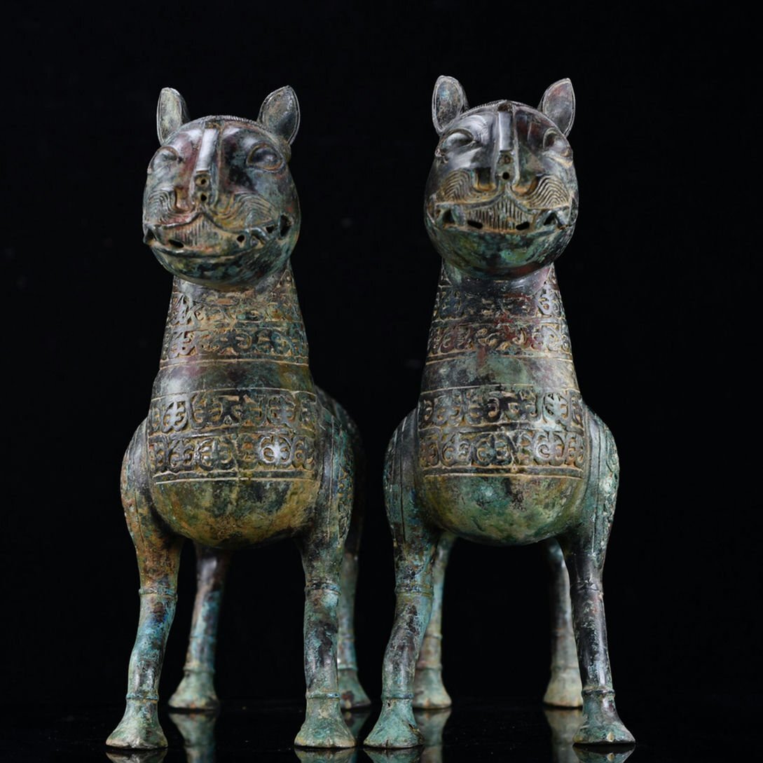 - ◆羽彰・古美術◆Y4041春秋時代 青銅器 青銅虎尊 細密細工★古置物★古賞物★古擺件★蒐集家放出★唐物