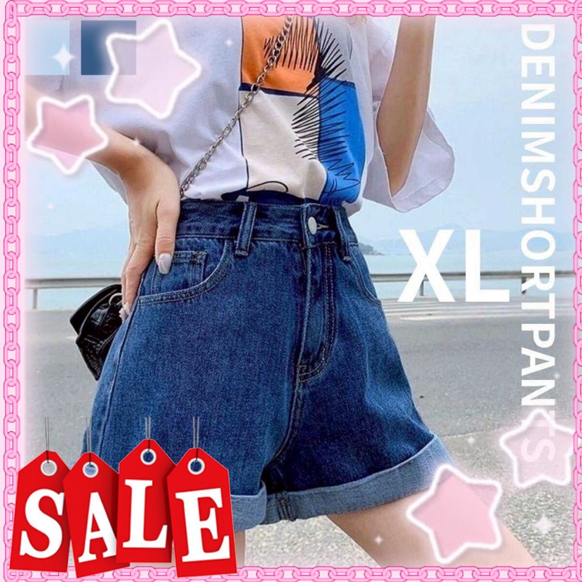 - デニムショートパンツ XL ハイウエスト ホットパンツ ロールアップ ブルー コメントでお値引き! 大特価!