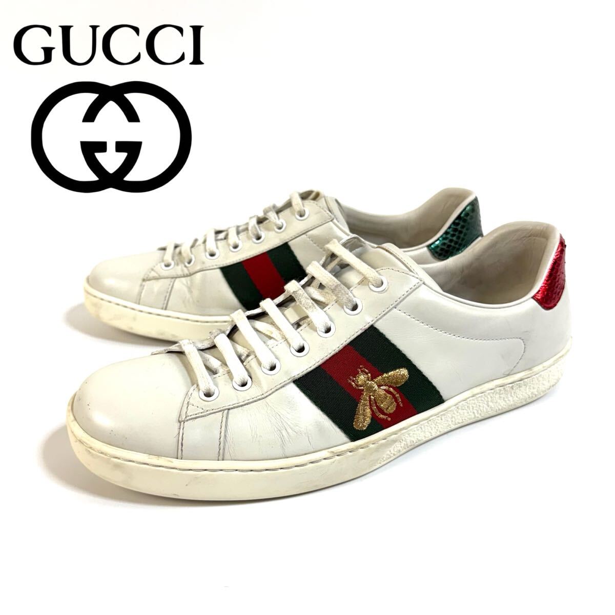 - 【美品】GUCCI グッチ レザー シェリー ライン エース エンブロイダリー ローカット スニーカー ビー 蜂 ホワイト 9 1/2 サイズ イタリア
