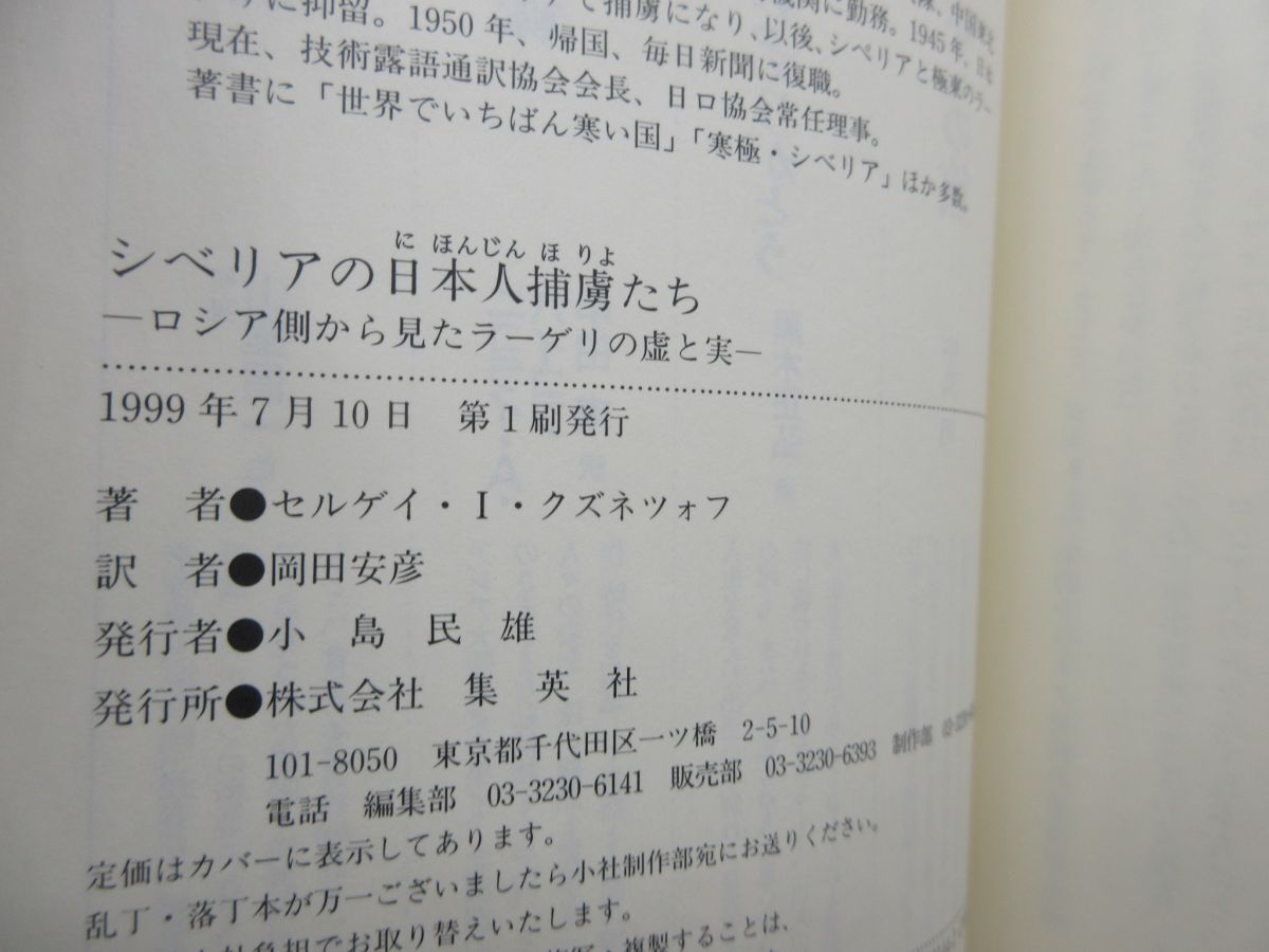 - G4■シベリアの日本人捕虜たち ロシア側から見た「ラーゲリ」の虚と実【著】セルゲイ・I・クズネツォフ【発行】集英社 1999年 ◆並■YPCP