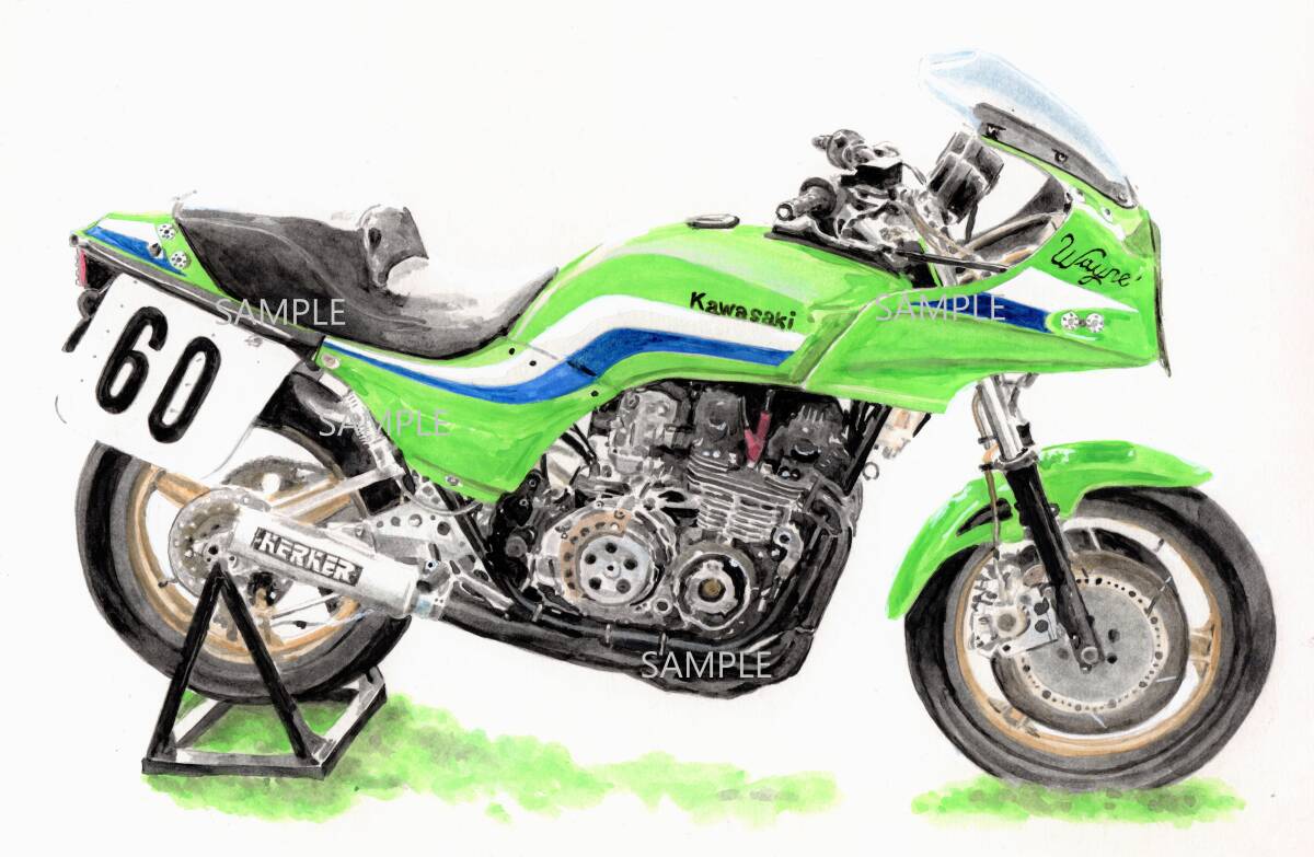 - A4プリントです カワサキ GPZ750 ウェインレイニー 水彩画 バイクイラスト AMAスーパーバイク