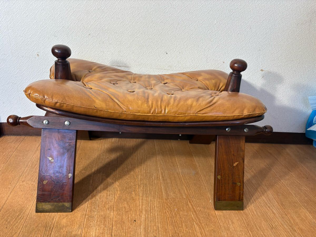 - 象嵌 スツール 椅子 オットマン チェア キャメルチェア アンティーク レザー ヴィンテージ レトロ 椅子 古道具 キャメルチェア