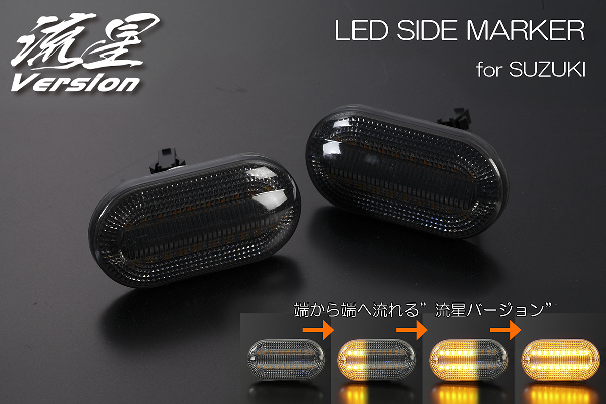 > [流星バージョン] JB43W ジムニーシエラ 5型/6型/7型 LED クリスタル サイドマーカー [スモークレンズ] 2パターン切替え 流れる ウインカー
