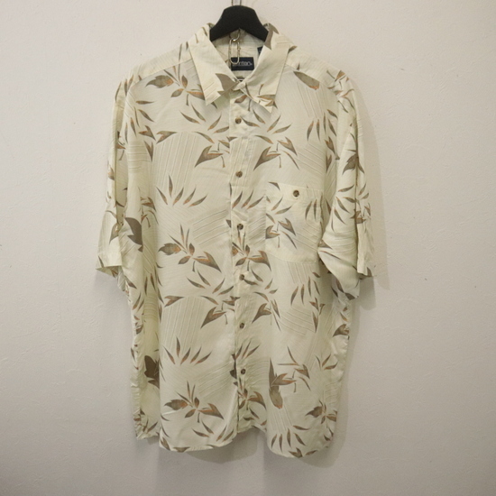 > L839 2000年代製 Puritan ピューリタン 半袖シャツ■00s 表記Lサイズ ベージュ レーヨン ボタニカル ベージュ 古着 アメカジ ストリート